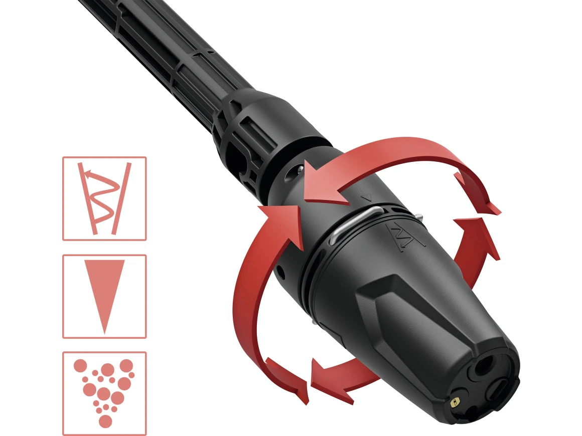 Die praktische 3-in-1 Multifunktionsdüse erlaubt einen schnellen Wechsel zwischen verschiedenen Strahlarten – ohne Zubehörwechsel.